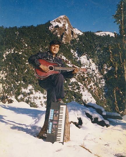 It is this one-dimensional view that Sthapit complicates in his project Moonsongs for Earth (2022–ongoing), a studied look at the musicians who energized the Maoist movement through song. “There was the PLA, who carried guns and bombs, and then there were musicians, who carried guitars and harmoniums,” Sthapit said as he scrolled through images from the series, which includes a mix of his own contemporary portraits, archival imagery, videos, interviews, and songs. Many of the archival photographs feature musicians posing in nature with their instruments, showing the world what they love and how they want to be seen. Group photographs depict them practicing and performing. “We had seen plenty of war images in the media, but I wanted to see the war through the eyes of the musicians,” Sthapit explained. “These intimate musical sessions too were a part of the war. These musicians held and spread the dream of the revolution through their songs.”