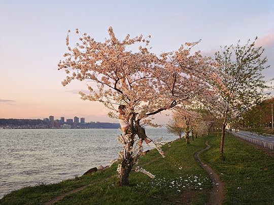 Alyssum was the first girl I photographed. At age fifteen, she had been sent to live with her father—a punitive measure for skipping school and smoking pot. I happened to be dating her father at the time, but I vastly preferred her company to his. After he left for work, we spent long conspiratorial mornings stretched under the air conditioner in his Midtown Manhattan condominium. Together we conceived a plan to shoot film stills starring Alyssum as a teenage runaway. I outfitted her in my own ratty clothes and brought her to the Port Authority Bus Terminal. The only surviving picture from the time shows her in a cherry tree by the West Side Highway. The branches seem too thin to support even her small weight; their cloud of petals offers little camouflage. She hovers pinkly between the river and the highway, two modes of travel that share a single vanishing point.