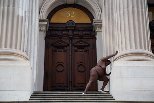 Nona Faustine, They Tagged The Land With Trophies and Institutions From Their Rapes And Conquests, Tweed Courthouse, NYC, 2013White Shoes is the title for Faustine’s series of self-portraits—oftentimes nude—in which she contorts herself into various poses across the New York landscape. The white heels act as a transporting talisman, allowing Faustine to commune with Black ancestors she has recovered through extensive research and those that are beyond the archive. Each image, often made in collaboration with her sister Channon, envisions Faustine’s connection to geographies and the past: her stunning brown figure locates sites where histories of enslavement once occurred but have subsequently been effaced. Faustine orchestrates her honorific landmarking and directs Channon when to click the shutter.