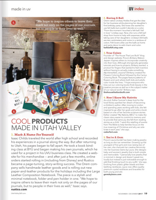 I'm excited that my book is featured in Utah Valley magazine's holiday, Nov/Dec 2017 issue. It's on news stands now. But you can also read it online here.