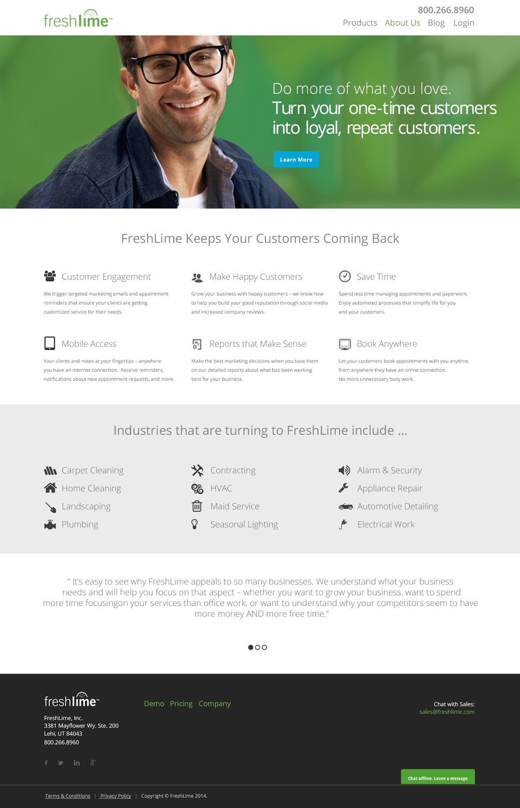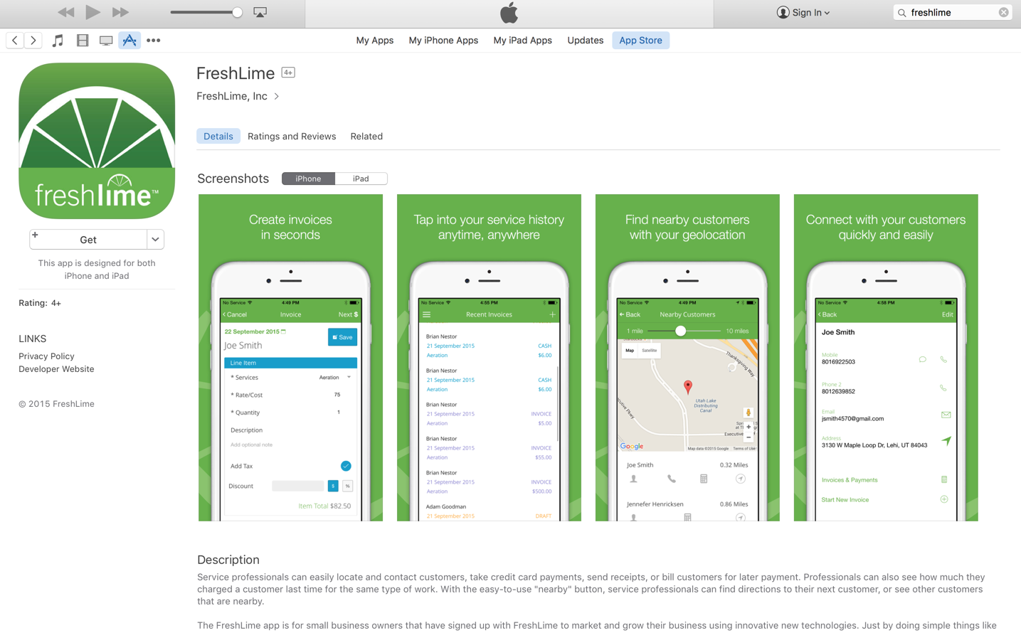 This piece showcases some work I did as a product manager, but I also wrote all of the copy both in the app, and to market the app. I lead the creation and development of this app, and submitted this app to be published through the iTunes store. I worked with a small team that consisted of a UX designer, a front end developer, and a back end developer to design and develop this app, which was published on October 2015. This app was created for our FreshLime customers, and was only available to customers that were given a login.