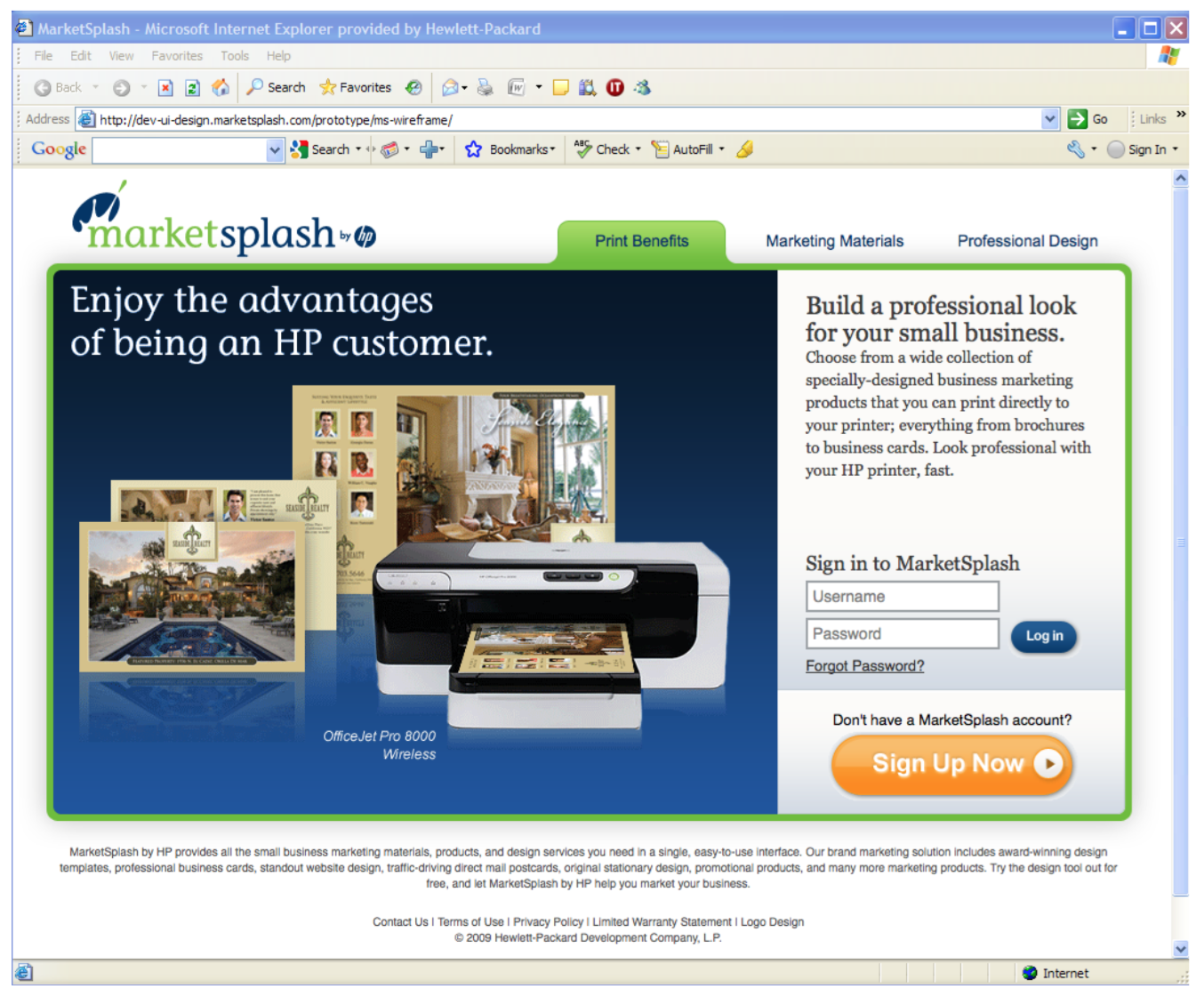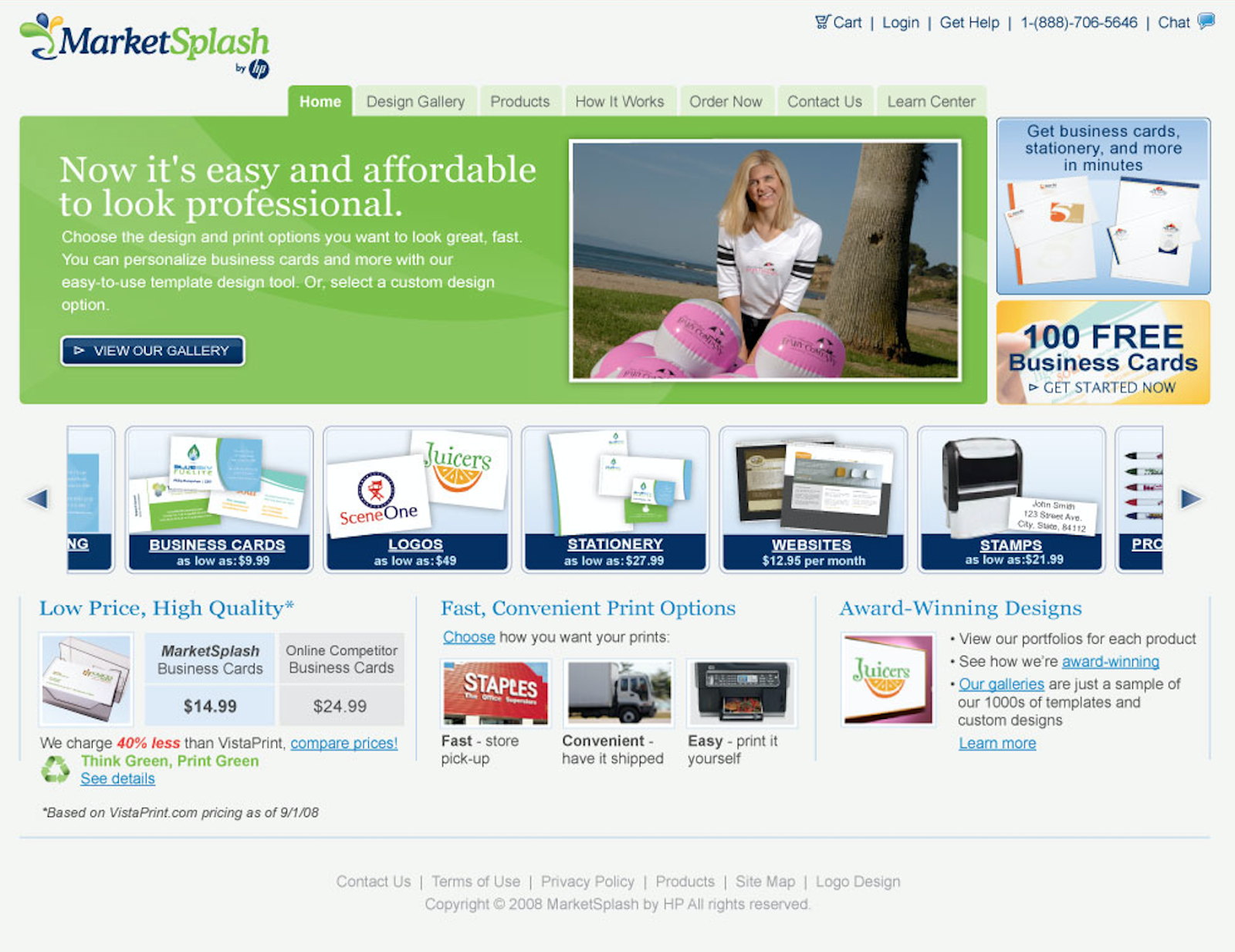 MarketSplash.com by HP - copy samples from home page and interior pages
