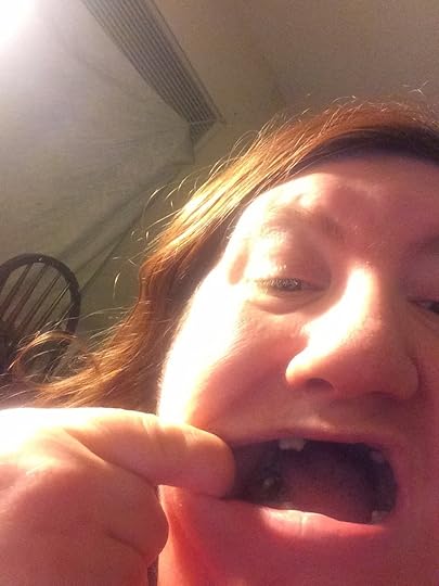 This is the most recent bit that broke off. Not very big, but makes a huge difference. Now, I don't have two molars on the right. I have 3/4 of one and 1/4 of another. And the remnants of a root canal on the top keep jabbing me in the lower gum, since the crown has broken off.