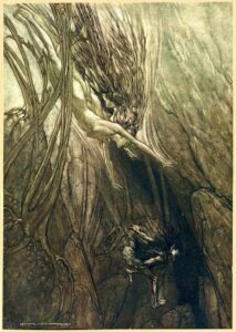 In the last post in this sequence, two weeks ago, we watched Alberich steal the magic gold from the bottom of the Rhine. This reenacted in symbolic form the process by which our Western civilization, like every other civilization in recorded history, abandoned the traditional human relationship with nature as a community of persons and started treating it as a passive source of commodities instead. Alberich’s act thus sets the drama of modern history in motion.