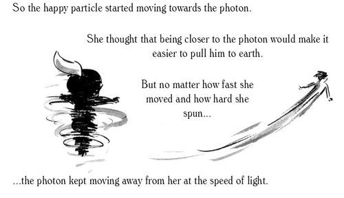 The Little Particle That Could is about a graviton who wants to meet a photon but just can’t see to catch him and looks like this: