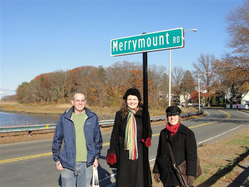 On 18 November “Ladies Making Comics” blogger Alexa Dickman and I went to Merry Mount in Quincy, the site of the notorious Maypole erected by Thomas Morton and his band of rebelled indentured servants in the 1620s. We were accompanied by fellow Boston Comics Roundtable writer Patrick Flaherty (“Mealtime”, “The Plague”) and my partner, Brian Bixby.