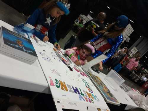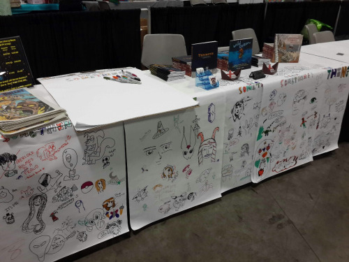 Big, huge thanks to all the wondeful young (and young-at-heart) artists who stopped by my booth at Awesome Con and doodled for me this weekend. I had the best table skirt at the show!
