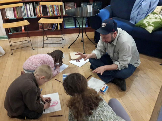 Sometimes kids get a bit of writer’s block. I try to encourage collaboration. I always make their teachers or parents draw comics if they’re sitting in. Have the adults bounce ideas off the kids. I always make my own comic, and I walk around the room and show each of them what I’m doing. Sometimes I’ll say something like, “Oh, you’re using a dragon. I kind of want to use a dragon in mine - do you know how I can work one in?” They’ll tell me, I’ll include it, and credit them as a co-writer. I’ll also give them suggestions if they’re stuck, or ask them if they can draw a cat in my comic because they draw cats better than me.
