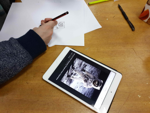 Since yesterday’s workshop was in France, we illustrated the story about Napoleon being transported into the 1980s with two most excellent dudes and going to an ice cream and water park before ultimately helping them with their history presentation. Afterwards, we did a story about astronauts in space. You can see pictures of their first comic below.