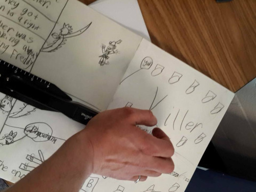 I’d also like to briefly mention 8-year-old Cal. He brought a ziplock bagged filled with his own minis and we were all blown away by how talented this kid was. Here’re two photos of his comics: