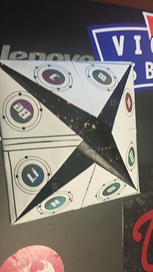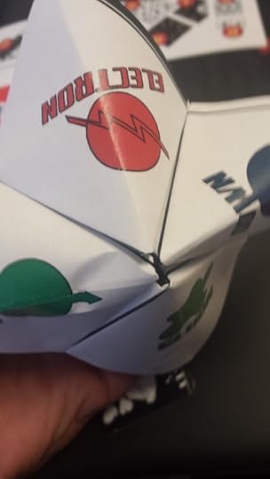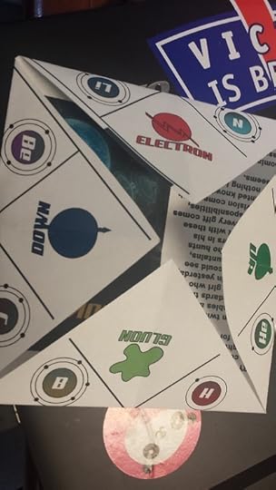 Also premiering at ALA Las Vegas later this month will be the prototype for my Future Builder. A primitive version of this technology has existed through the years, often called a Fortune Teller or a Cootie Catcher. This technology, however, starts with the four elementary particles that make up everything you see (and many things you don’t see), everything you touch, everything you breath…up and down quarks, electrons, and gluons. These four particles combine in different ways to make everything that matters to you and everything that doesn’t. That person who seems so different or speaks a different language? Your dog? A cockroach? This computer you’re using right now, the book on your desk, the paper in your book? Everything you see is just a different combination of up and down quarks, electrons, and gluons.