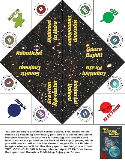 6) I’ll have future builders (an advanced technology based off of the more primitive Paper Fortune Tellers or Cootie Catchers, as they used to be called) that I made to promote TRY LOOKING AHEAD!