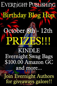 Evernight Publishing opened its doors two years ago. In those two years we’ve signed over one hundred and sixty authors and published over three hundred books. From paranormal to contemporary, we’ve had more best sellers than we can count and made thousands of people smile, sigh and gasp. So, as a thank you to all our readers and everyone who has supported us, we’re holding this blog hop and we have a whole lot of prizes to offer you.