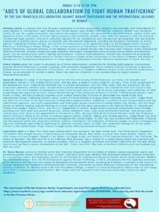 The event, which will take place on Friday, March 19th, from 12:30-2 p.m., is titled “ABC’s of Global Collaboration To Fight Human Trafficking” and it is part of the San Francisco delegation’s series of events. To participate, you must first register (free!) as an advocate here.