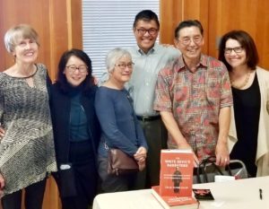 Panelists at Cameron House discussion of The White Devil’s Daughters on September 21, 2019 (from left to right) Catherine Cameron, grandniece of Donaldina Cameron, Tamiko Wong, executive director of the Chinese Historical Society of America, Mike Lee, executive director of Cameron House, Rev. Harry Chuck, community activist and former executive director of Cameron House, and Julia Flynn Siler, author and journalist.
