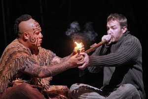Jonathan Lemalu (Queequeg) and Stephen Costello (Greenhorn) in SF Opera’s Moby Dick. Photo by Cory Weaver.