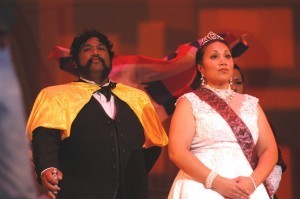 King David Kalakaua, played by R. Bamboa, and Princess Liliuokalani, played by C. Fua in the American premiere of “Kingdom Denied”