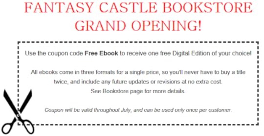 And lastly, if you haven't taken advantage of the free ebook offer yet, you can still get any one of my titles free until the end of the month. Even if you've already got them, downloading from the Fantasy Castle Bookstore will get you automatic membership status with access to restricted content and all future upgrades, as well as all available formats of that title now and in perpetuity, so no matter what e-reader you use in the future you will always be able to read the ebooks you get directly from my website.