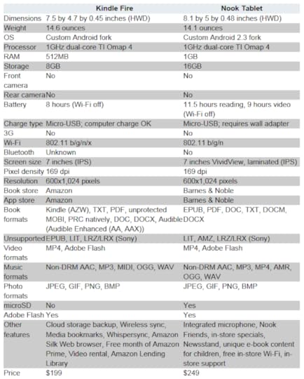 Kindle Fire vs. Nook Tablet (courtesy of CNET)