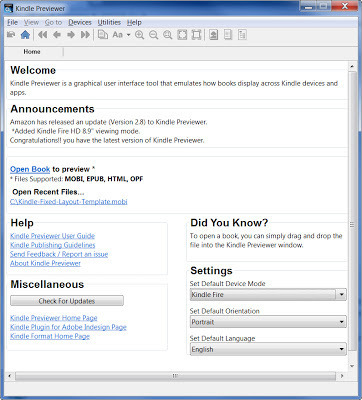 The ebook is being released only in mobi reflowable format at present, since it is presumed that anyone who is intending to create Kindle ebooks has access to at least one Kindle device or app on which to read it. The title has also been uploaded to Amazon, where it should be available to purchase sometime tomorrow.