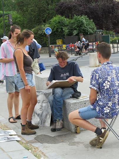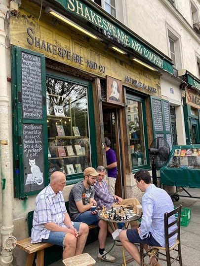 Chess players outside the famous Shakespeare & Co. bookstore.