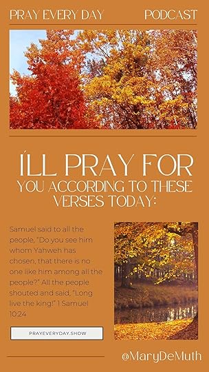 Today’s Scripture: Mary is reading 1 Samuel 10:14-27 in the WEB. Access Pray Every Day every single day on the Pray Every Day App! Not only can you listen, but I’ve created 365 daily devotions you can read as well–all about connecting deeply with Jesus, finding healing, and experiencing His presence. Download the […]