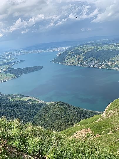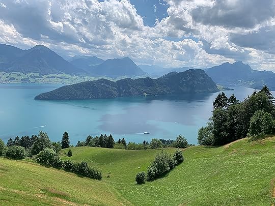 The Appalachians are much older than the Alps and they've been ground down over a few zillion years, which is why they’re relatively stubby little things. The Alps are young and TALL and I loved them immediately. We came around a bend in the road and were suddenly on the shore of Lake Lucern, a calm azure lake between mountains with a town around the shore. The mountains near the lake sweep up to the sky, and behind them are even BIGGER mountains capped with clouds. I would be immensely happy if I could live there.