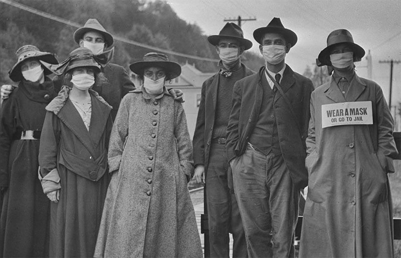 This is, of course, nonsense. Compulsory mask wearing and social distancing was an automatic measure implemented during the infamous 1918 flu pandemic, as even the most basic of historical research easily demonstrates.