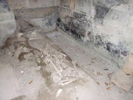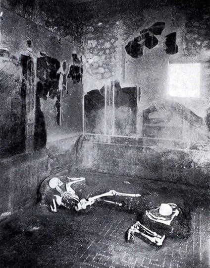 Above: A picture taken in 1934 of Room 9 of the Casa del Fabbro, with the remains of the skeletons as they were discovered. It was these skeletons which were the subject of the 2022 DNA analysis. (Image from Notizie degli Scavi di Antichità, 1934, p. 286, fig. 10.) Below, the same scene photographed in 2009.