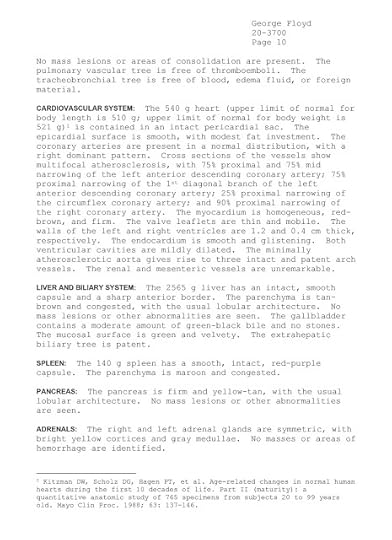 According to the Hennepin County Medical Examiner’s Office Autopsy Report, 20-3700, which listed the date and hour of the autopsy as 5-26-20; 9:25 a.m., and was carried out by pathologist Andrew M. Baker, MD, the primary cause of death was listed as “cardiopulmonary arrest”—in more common terms, cardiac arrest, or a sudden stop in effective and normal blood circulation due to failure of the heart to pump blood.[2]