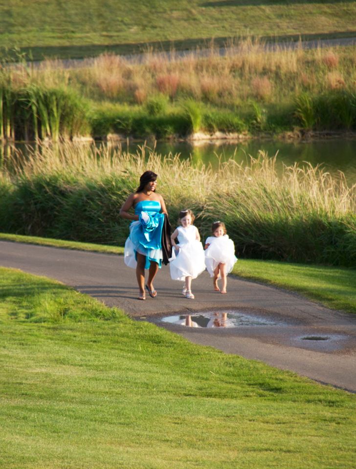 Here are the two flower girls and one of the bridesmaids. Adorable!Weddings are such fabulous affairs, aren’t they? My niece made a gorgeous bride, her new husband was utterly handsome, and the entire event was perfect. Of course there were a few hiccups, but all weddings need those. The white and blue sand for the sand ceremony was forgotten at the hotel, but we were on a golf course, so I sent my son to the sand trap with two plastic cups. (Don’t worry, he raked away his foot prints). It worked, and then there was that moment when the bride’s father, my youngest brother, became a bit choked up during his father-of-the-bride speech, and my oldest brother stepped in for support. No one will ever forget it. I guarantee it!