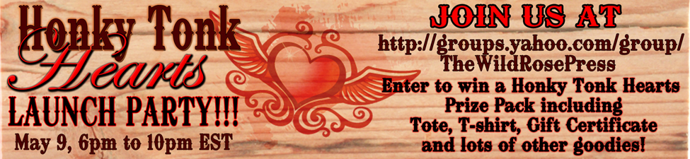 On May 9th I’ll be participating in Honky Tonk Hearts Launch Party at http://groups.yahoo.com/group/TheWildRosePress/ Stop over and join the group so you can participate. There will be lots of prizes! You can find all the information about it here: http://behindthegardengate.blogspot.ca/2012/04/launch-party.html