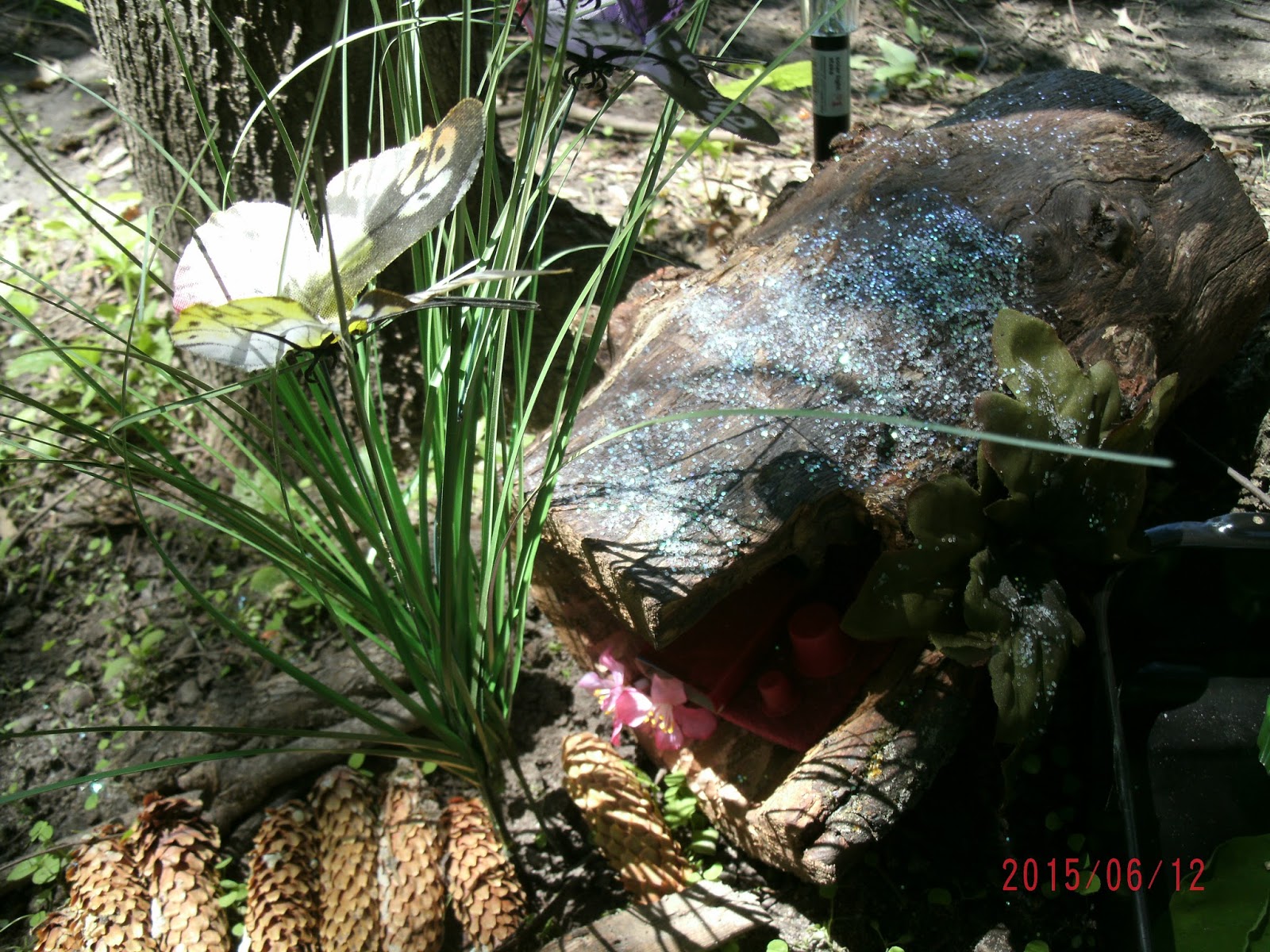 Speaking of fun times, I have to share what happened last night! The girls found a fairy house down in our woods.