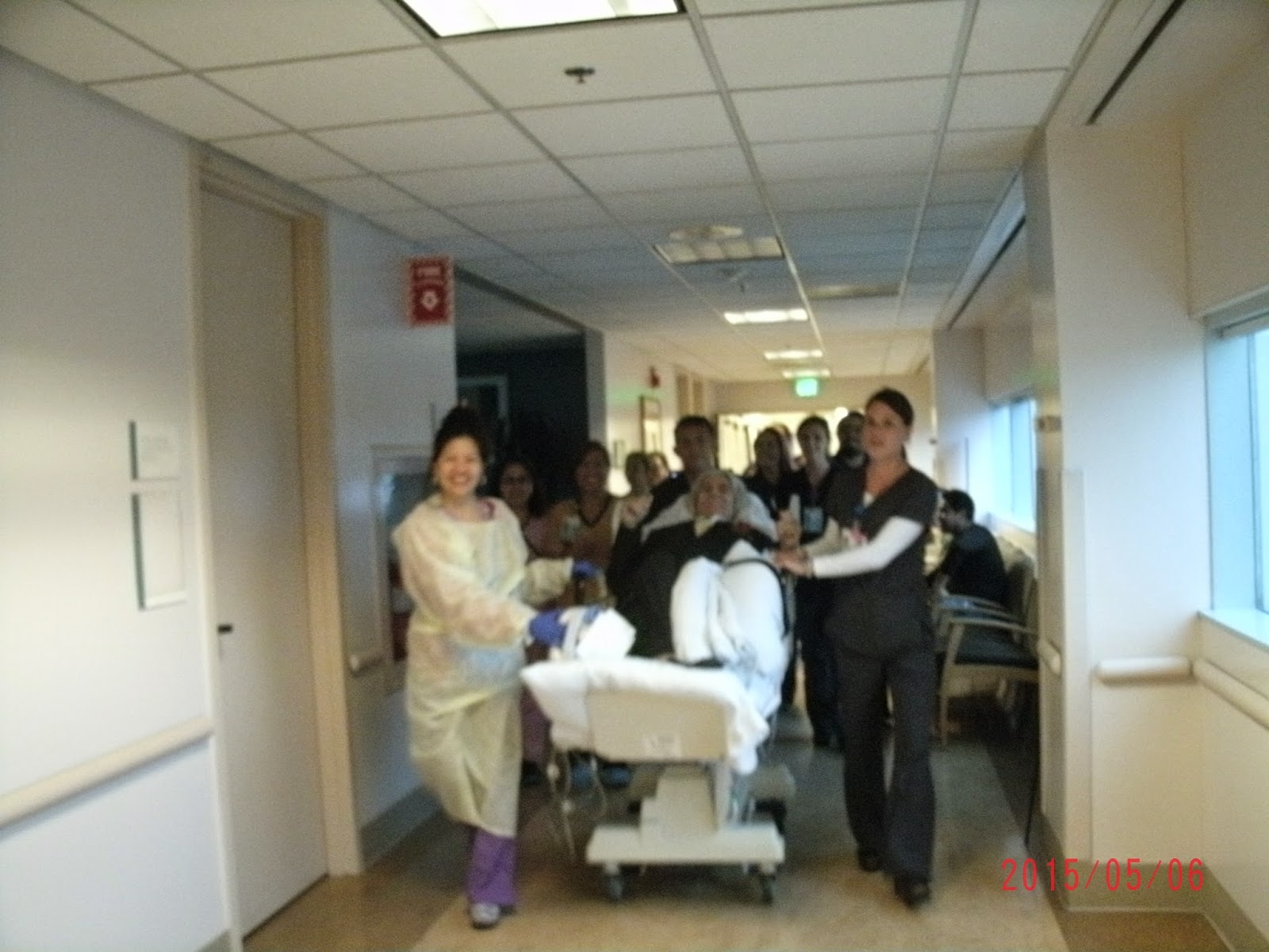Word spread throughout the hospital, and let me tell you, nurses do a whole lot more than they will ever get credit for! Decorations were made, a room arranged, even a surgery rescheduled! The charge nurse’s husband rode his bike across town for a suit for the groom, the hospital kitchen made a three course meal, an ICU nurse (who is also a professional photographer) came in on his day off to take pictures, and the music…oh, my, but there are some talented singers at the UC Medical Center San Diego! The songs they sang didn’t leave a dry eye in the room!