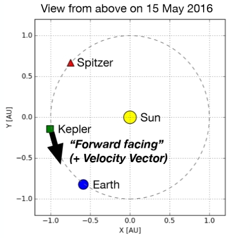 Image: The Kepler Space Telescope, now operating in its K2 extended mission, diagrammed here in ‘forward-facing mode.’ “Forward-facing” implies looking towards Earth in the spacecraft’s orbit, in the direction of the spacecraft’s velocity vector. Credit: This is a slide from a talk by Geert Barentsen and Tom Barclay for the 20th Microlensing Workshop in Paris in 2016.