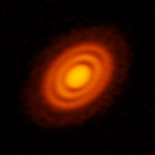 Image: ALMA image of the protoplanetary disk surrounding the young star HD 163296 as seen in dust. Credit: ALMA (ESO/NAOJ/NRAO); A. Isella; B. Saxton (NRAO/AUI/NSF).