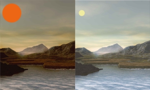 Image: Artist’s impressions of a habitable planet around M-dwarfs (left) and primordial Earth (right). Credit: ABC/NINS.