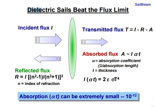 My mental light bulb went on and said I know from working in laser technology and other areas I work on, that you can make very low absorption dielectric materials. If I can make very high quality, very low absorption dielectrics, I could push them really hard. Now instead of thinking in terms of taking a sail and dividing it into ten pieces, I can divide it into a million pieces. I started doing calculations and realized that this made sense as a propulsion system.