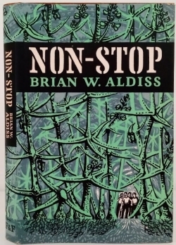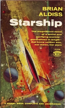 The science fiction trope that often comes to mind in conjunction with the interstellar ark idea is of the crew that has lost all sense of the mission. Brian Aldiss’ Non-Stop (1958), published in the US as Starship, is a classic case of a generation ship that has become the entire world. The US title, of course, gave away the whole plot, which is sort of ridiculous. Have a look at the British cover, which leaves the setting mysterious for most of the book, and the American one, which blatantly tells you what’s going on. I wonder what Aldiss thought of this.