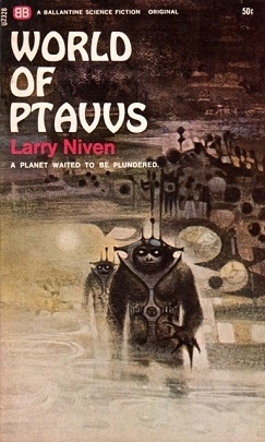 Larry Niven played around with an interesting form of suspended animation in his 1966 Ballantine title World of Ptavvs. While the usual science fictional imagining is of a crew in some sort of cryogenic deep freeze, Niven went all out and envisioned a means of suspending time itself. It’s an ingenious concept based on an earlier short story in Worlds of Tomorrow, one that so aggressively pushes the physics that the more subtle delights of characterization and perspective come almost as afterthoughts. Niven fans like myself will recognize it as taking part in his ‘Known Space’ universe.
