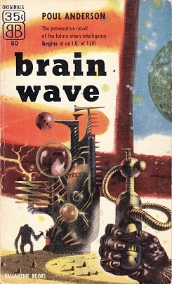 Image: That’s a Richard Powers cover on the first edition of Poul Anderson’s Brain Wave, illustrating a novel Anderson considered one of his best.