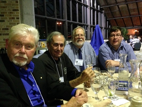 Image: Dinner after the first day’s last plenary session in Oak Ridge in 2014. That’s Jim Benford at far left, then James Early, Sandy Montgomery and Michael Lynch.