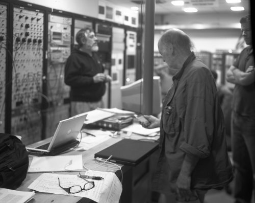 Image: At Arecibo, Joe Davis ponders transmission options as he holds the possible answer. Credit: Ashley Clark.
