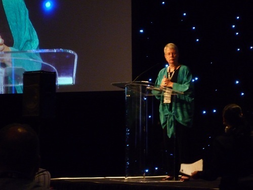 Image: Mae Jemison addresses the crowd at Saturday night’s gala.