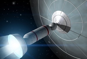 Normally when we talk about interstellar sail concepts, we're looking at some kind of microwave or laser beaming technologies of the kind Robert Forward wrote about, in which the sail is driven by a beam produced by an installation in the Solar System. Greg and Jim Benford have carried out sail experiments in the laboratory showing that microwave beaming could indeed drive such a sail. But Steven Howe's concept, developed in reports for NASA's Institute for Advanced Concepts, involved antimatter released from within the spacecraft. The latter would encounter a sail enriched with uranium-235 to reach velocities of well over 100 kilometers per second.