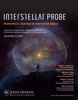 A recent paper in Acta Astronautica reminds me that the Mission Concept Report on the Interstellar Probe mission has been available on the team’s website since December. Titled Interstellar Probe: Humanity’s Journey to Interstellar Space, this is the result of lengthy research out of Johns Hopkins Applied Physics Laboratory under the aegis of Ralph McNutt, who has served as principal investigator. I bring the mission concept up now because the new paper draws directly on the report and is essentially an overview to the community about the findings of this team.
