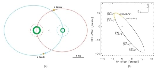 The good news is that we have a window from 2022 to 2035 in which, even as our observing tools continue to improve, the parameters of that orbit as seen from Earth will separate Centauri A and B enough to allow astronomers to overcome light contamination. I think we can be quite optimistic about what we’ll find within the decade, assuming there are indeed planets here. I suspect we will find planets around each, but whether we find something in the habitable zone is anyone’s guess.