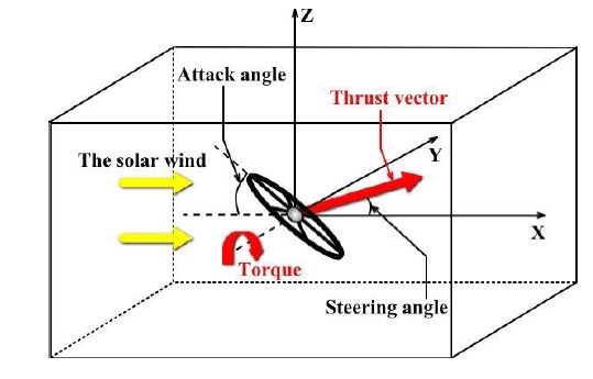 Figure 6 shows that the craft could steer up to 12 degrees away from the solar wind direction. However, maintaining that angle of attack requires a constant force to oppose the torque restoring the angle of attack to zero or 90 degrees. The coil therefore acts like a weather vane, always trying to align itself with the solar wind. To maintain the angle of attack would be difficult. Reaction wheels like those on the Kepler telescope could only act in a transient manner. Another possibility suggested is to move the center of gravity of the craft in some way. Adding booms with coils might be another solution, albeit by adding mass and complexity, undesirable for this first generation probe. Jeff Greason has an upcoming paper to be published in 2022 on theoretical navigation with possible ranges of steering capability.