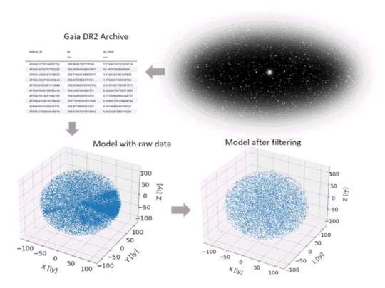 Figure 5: Setting up the star model based on Gaia DR2 and filtering (animated figure from [9])
