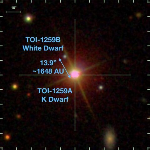 Image: SDSS image of the planet host TOI-1259A and its bound white dwarf companion TOI-1259B. Credit: Martin et al., 2021.